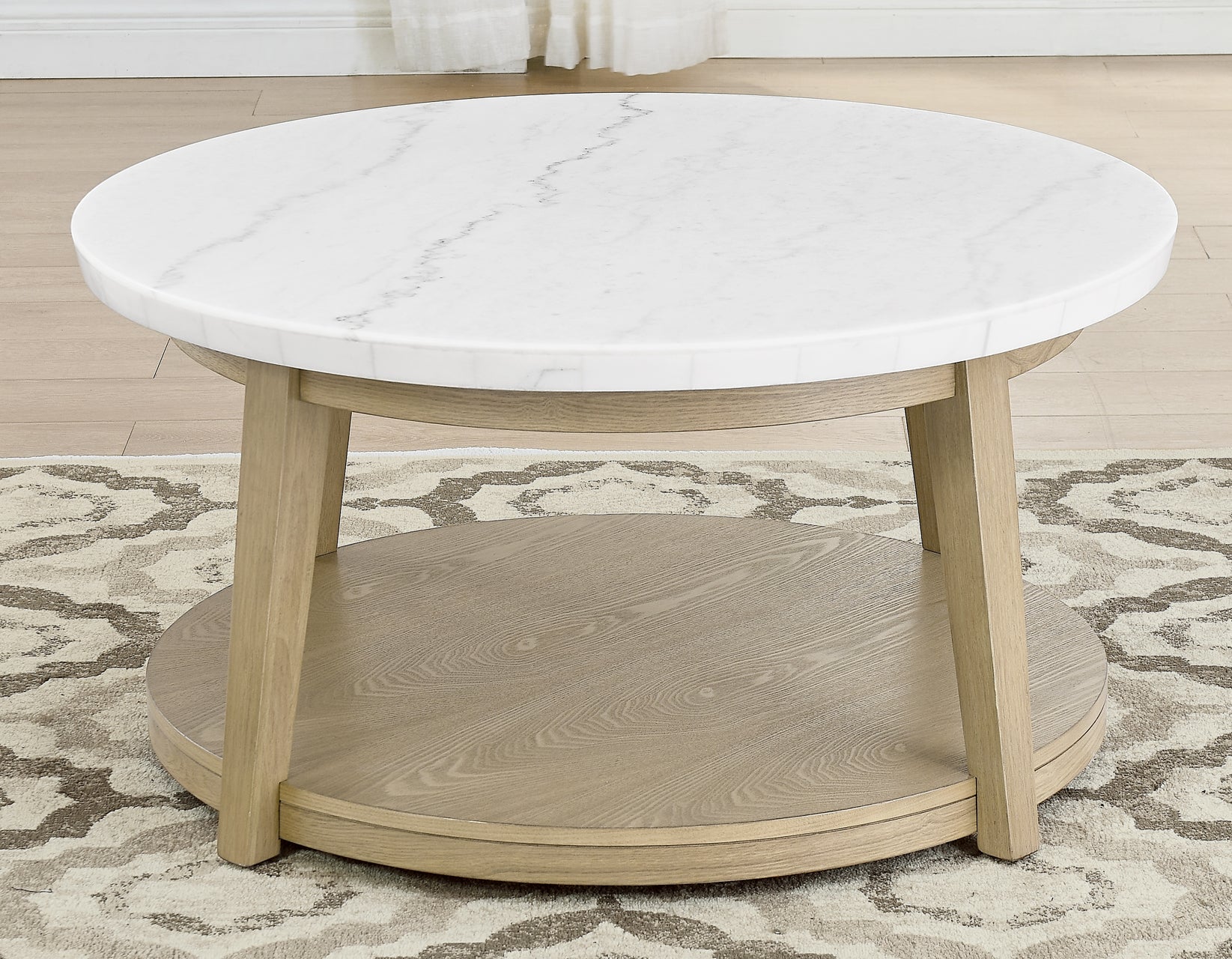 Vida Round 36″ White Marble Top Cocktail Table with Casters
