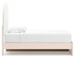 | Details | Includes upholstered panel headboard, side rails with storage, panel footboard and roll slats, Made with engineered wood (MDF/particleboard/plywood) and decorative laminate for the right balance of affordability and durability, Subtle blush finish over replicated pecan wood grain, Decorative laminate replicates natural or man-made material surfaces with consistent color, pattern and texture, 2 smooth-gliding storage drawers, 2 storage cubbies, Polyester upholstery, Bed does not require a foundation/box spring, Mattress available, sold separately, Minor assembly required | |
