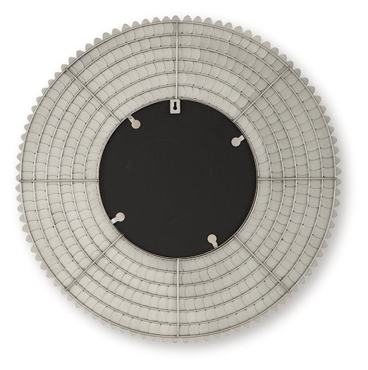 Lighten the mood of your living space. Dazzling with its layered sunburst-style frame, this accent mirror serves as a striking focal point for wall decor. A champagne-colored foil finish reflects your contemporary taste.